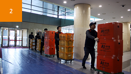 지역적인 특수성과 거리교통상황에 따라서 최단시간 운송작업 진행